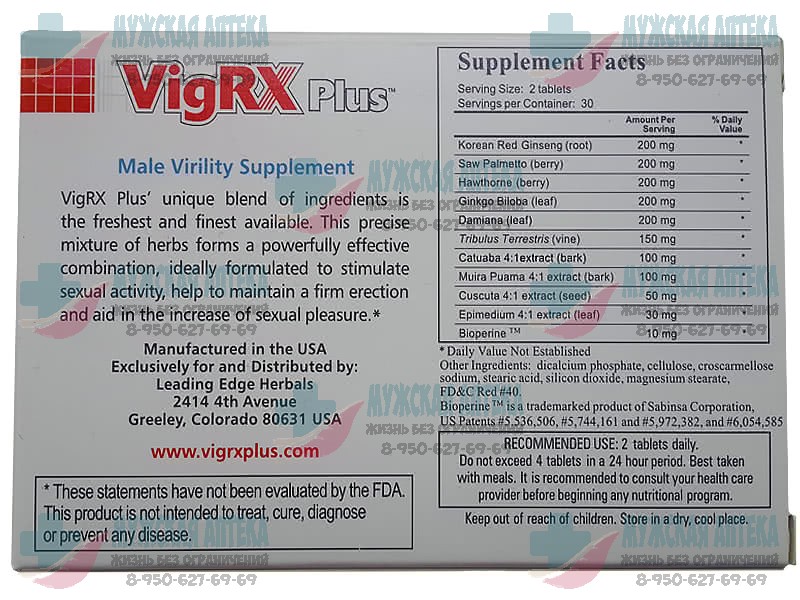 Состав Вигрикс Плюс VigRX Plus (каждая таблетка содержит):
